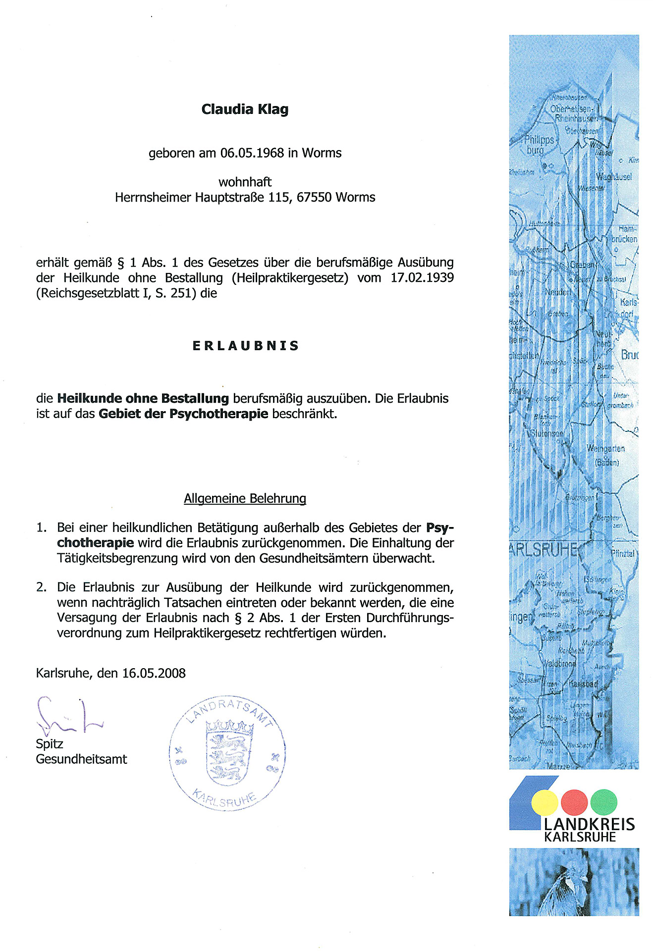 - Heilpraktikerin für Psychotherapie - Staatliche Annerkennung - Karlsruhe