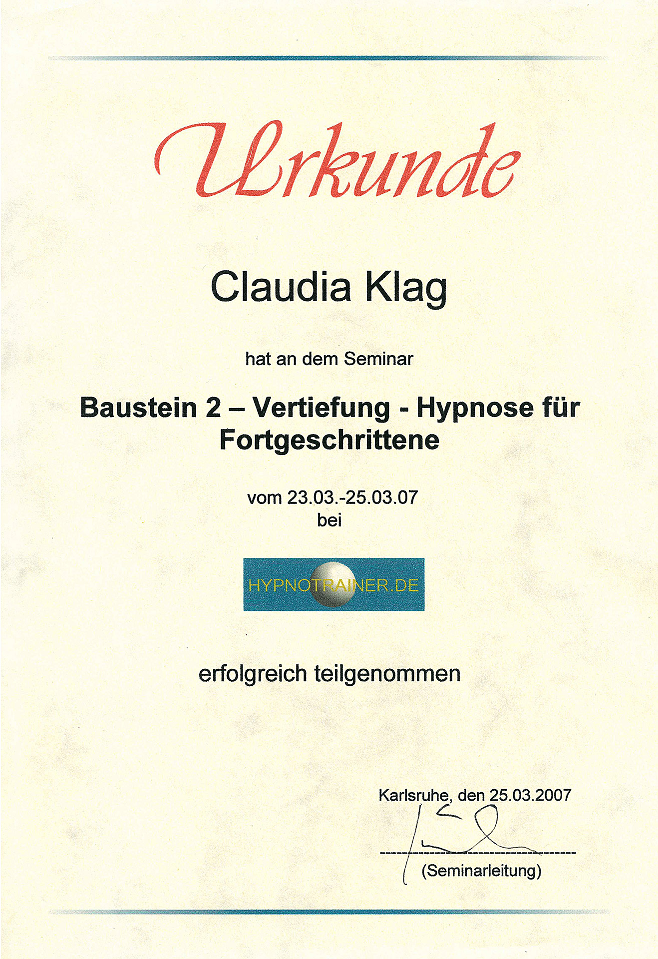 - Hypnoseleiterin Ausbildung und Zertifizierung durch Jan Günter