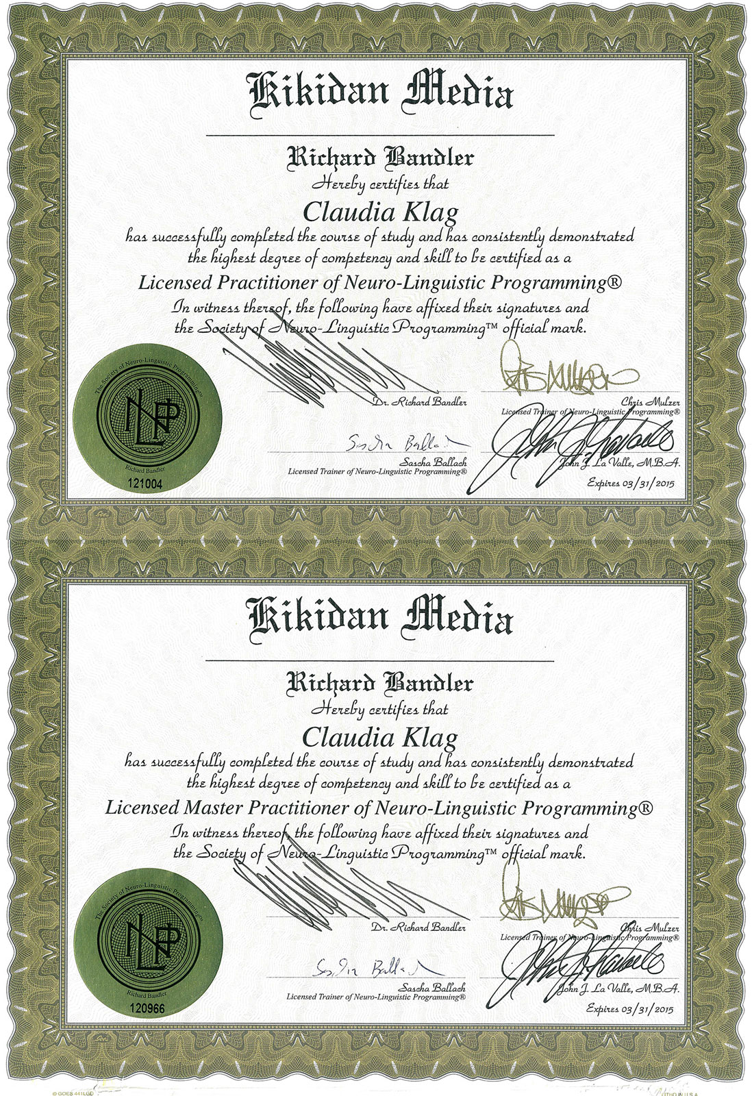 - NLP Practitioner - Ausbildung Chris Mulzer – Zertifizierung Society of NLP