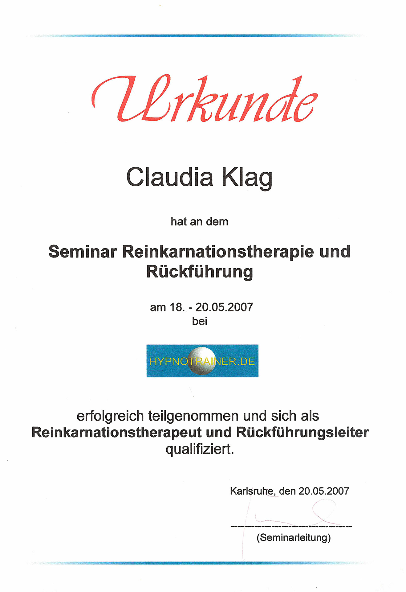 - Rückführungstherapeutin Ausbildung und Zertifizierung durch Jan Günther