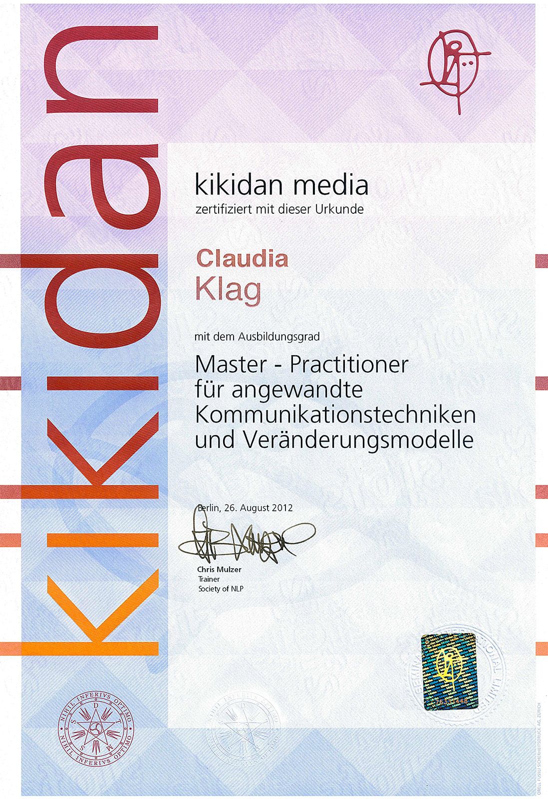 - Master für angewandte Kommunikationstechniken und Veränderungsmodelle – Ausbildung und Zertifizierung durch Kididan Multimedia
